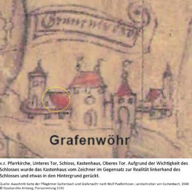 Ein markanter großer Bau am Rand der Altstadt, idyllisch am Stadtweiher gelegen, grüßt Autofahrer im Vorbeifahren. Das im Volksmund „Kastenhaus“ genannte Gebäude beherbergt heute das Kultur- und Militärmuseum, seine Geschichte reicht aber schon fast 500 Jahre zurück. Es gehört damit neben Rathaus (1462), Alter Pfarrkirche (15.Jhd) und Stadtmauer zu den vier ältesten Bauwerken in Grafenwöhr.