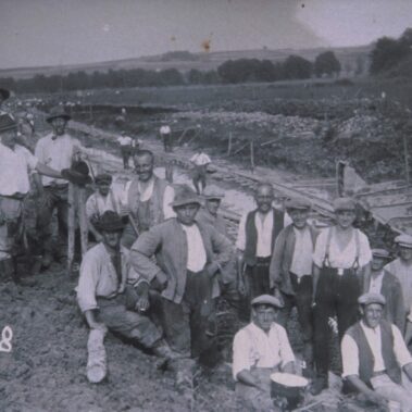 Arbeiterinnen und Arbeiter des Forstamtes Grafenwöhrs nutzten die Ringbahn für die tägliche Arbeit. Es wurde Torf und Holz mit den Waggons transportiert.