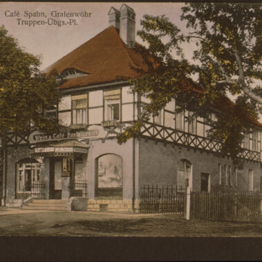 Als 1910 der Truppenübungsplatz in Grafenwöhr errichtet wurde, sollten alle Baumaßnahmen durch Fotografien dokumentiert werden. Dazu berief die königlich-bayerische Armee den Militär-Fotografen Hans Spahn aus Hammelburg nach Grafenwöhr. Mit seiner Fotoanstalt hatte man ihn im Nebengebäude des Militärgasthofs einquartiert und seine Aufgabe war es, neben Szenen vom Bau des Lagers auch Soldaten in Gruppen und Einzelportraits auf Glasplatten festzuhalten.
