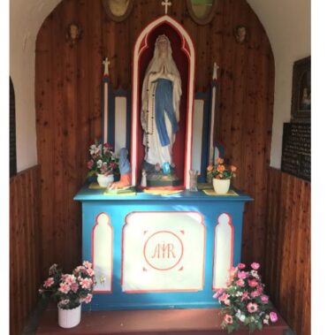 Im großen Garten des Anwesens steht eine Kapelle und ein Gedenkkreuz. Die Kapelle erbaute während des Ersten Weltkrieges ein russischer Kriegsgefangener (Architekt) als Andenken an die Schwiegereltern von Hans Spahn, Familie Schwab. Die Spahns haben während der Kriege in ihrer Kapelle viel gebetet. Das Gedenkkreuz wurde für Ottmar Spahn errichtet, den Bruder von Erich und Josef, der 1941 in Kiew gefallen ist.