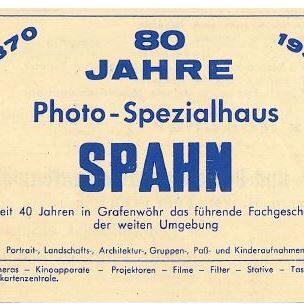 Neben dem Fotoatelier baute der Bruder des Fotografen, das „Café Spahn“ mit Weinhandlung, welches bei der Bombardierung im April 1945 vollständig abbrannte. Auch das Fotoatelier wurde getroffen und viele archivierte Glasplatten gingen verloren oder die Amerikaner beschlagnahmten diese, ebenso die Fotoapparate, denn im Zuge der Entnazifizierung suchte man nach Aufnahmen von Parteigrößen des Dritten Reiches. Erich Spahn, geboren 1914, der im Elternhaus das Fotografenhandwerk erlernte, war während des Zweiten Weltkrieges bei der Luftwaffe als Fotograf eingesetzt und kehrte nach dem Krieg zu Fuß nach Grafenwöhr zurück. Er besorgte sich eine Kamera und fotografierte verbotenerweise die Ausmaße der Zerstörung durch die Bombardierung im Hauptlager für die Nachwelt. Mehrmals nahm ihn die Militärpolizei deshalb fest.