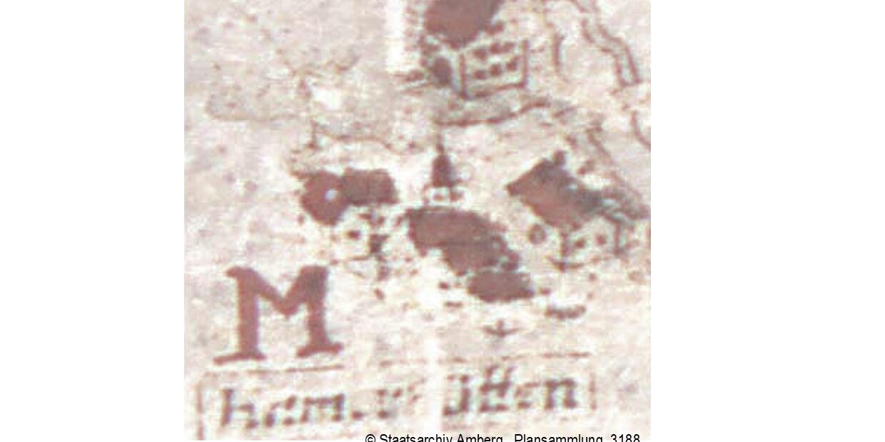 Der Hammer „bey den Hütten“, mit einer der ältesten unserer Gegend, stand nördlich der Laurentiuskirche an der Haidenaab beim „Alten Schloss“ auf der „Penslpaint“. Das Schloss war wegen des sumpfigen
