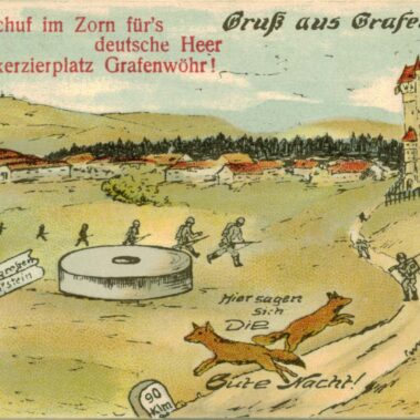 Tatsache ist, dass Postkarten aus Grafenwöhr viel zu erzählen hatten, über beide Weltkriege, die Goldenen Zwanziger oder die Übernahme des „Lagers“ durch die Amerikaner. Unzählige Postkarten wurden vom Truppenübungsplatz aus in die ganze Welt verschickt, so dass Erinnerungen an Grafenwöhr weltweit an Wänden hängen oder in Schubladen liegen. Übrigens wurden diese Witzpostkarten relativ bald verboten. Im Januar 1935 verbietet die Kommandantur den Vertrieb dieser Karten, da diese das Ansehen des Truppenübungsplatzes schädigten. Auch der Stadtrat wurde darüber informiert, dass der Verkauf dieser Karten untersagt sei.