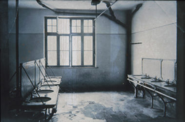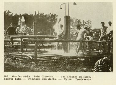 In den Mannschaftsbaracken gab es als Waschgelegenheit nur einfache Waschbecken. Für draußen auf den Schießbahnen wurden Duschen aus Holz und einfachen Brausen improvisiert. Da mobile Toiletten noch nicht erfunden waren, musste für die Notdurft der gute alte „Donnerbalken“ genügen.