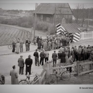 Das Holzhäuschen mit dem markanten Torbogen, welchen die US-Armee 1960 aufstellen ließen, wurde auf unzähligen Postkarten abgebildet in die ganze Welt versandt. Im Juli 1990 rettete Fotograf Spahn das alte hölzerne Häuschen und stellte es in seinen Garten.