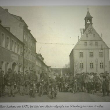 Unter den Klängen einer Musikkapelle machte eine Reihe von Motorrädern und Automobilen im Frühjahr 1927 eine Korsofahrt rund um den Stadtplatz bis zum Militärgasthof. Gemeinschaft leben und zeigen was man hat – sozusagen.?